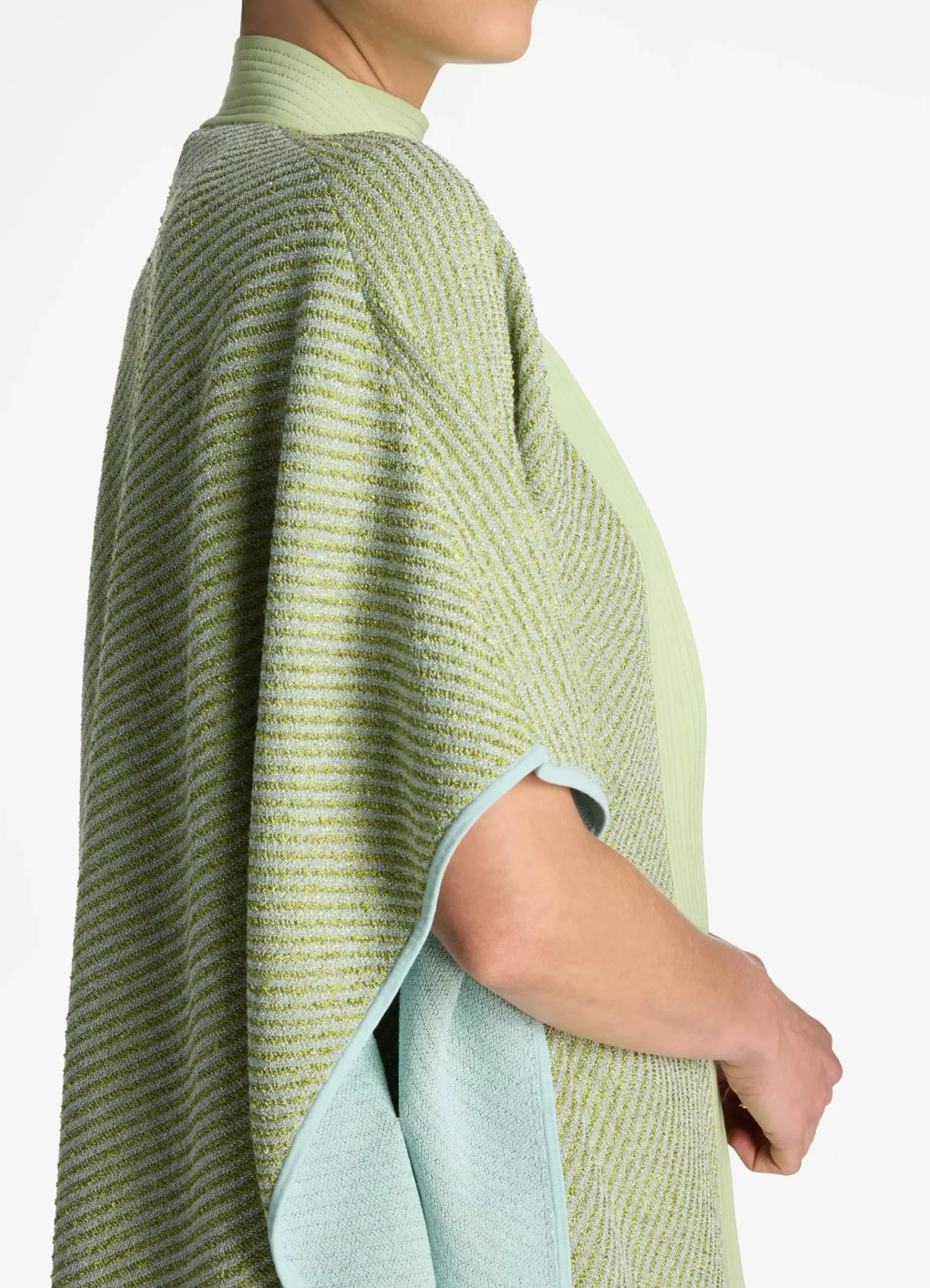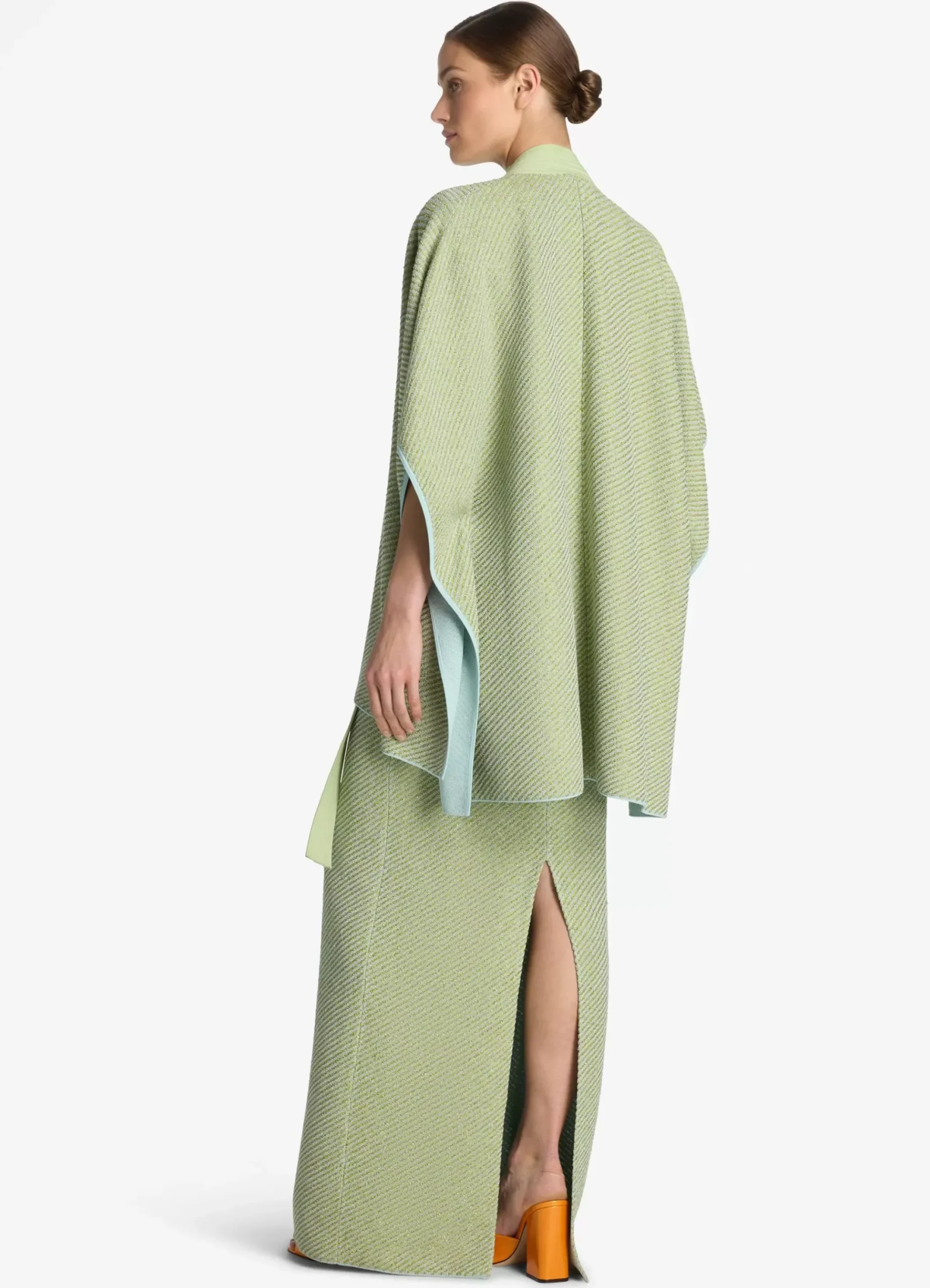 Best St. John Sequin Stretch Twill Knit Cape Chartreuse/Mint Multi