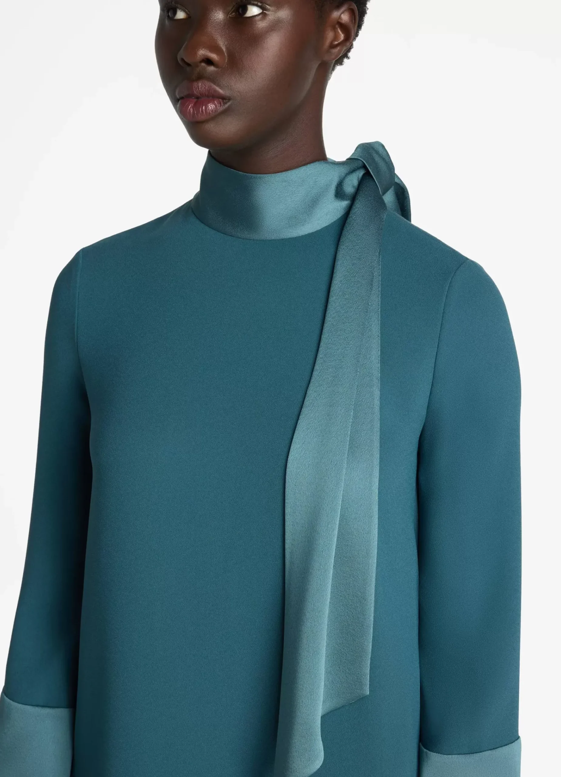 Discount St. John Two Tone Satin Back Crepe Dress Prussian Blue